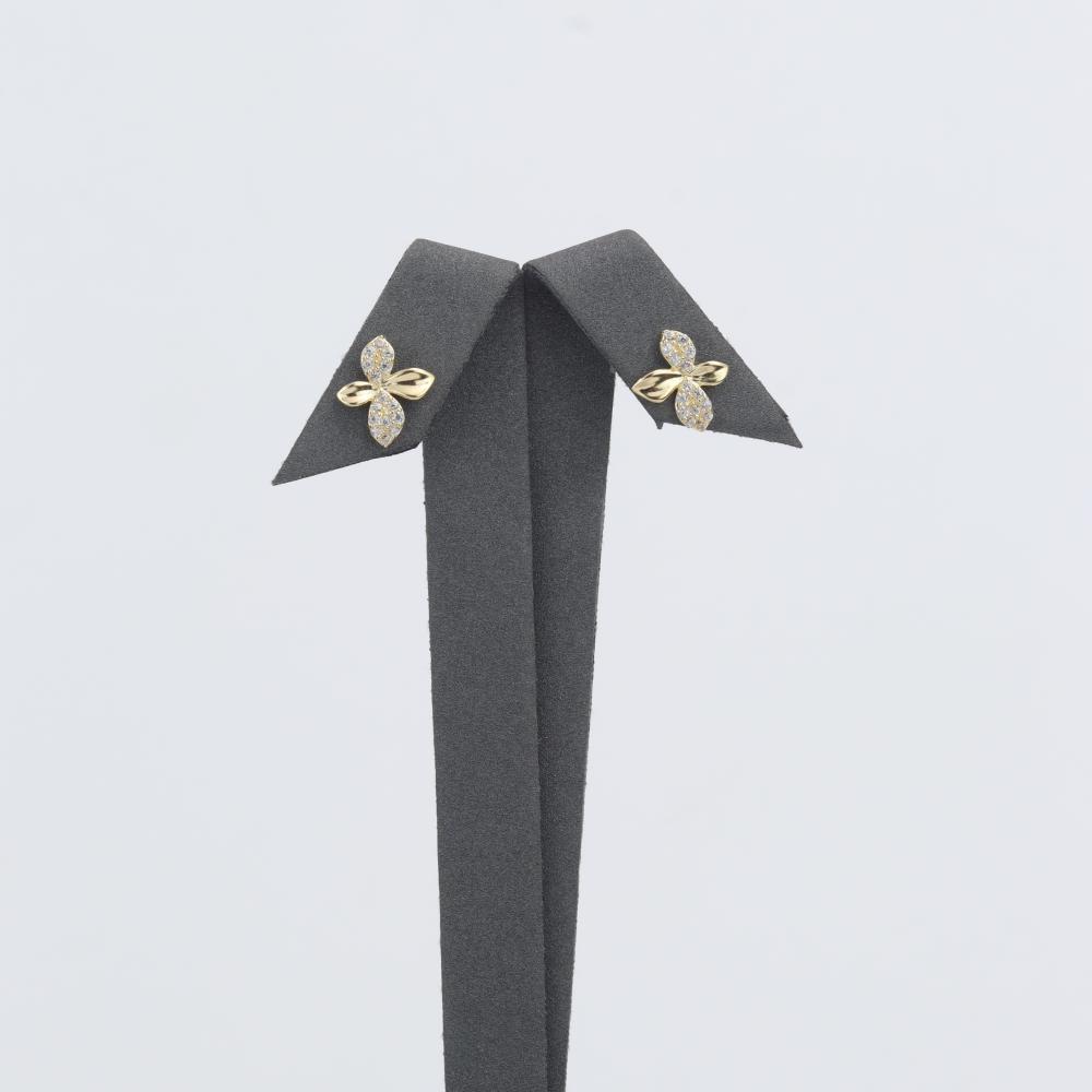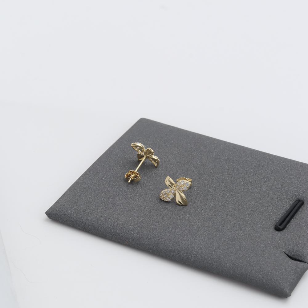 حلق ذهب عيار 18 بتصميم راقٍ ومبتكر، يضيف لمسة من التألق. صُمم ليكون جزءاً من أناقتك في جميع مناسباتك، ويُضيف لمسة من الجمال على كل لحظة.