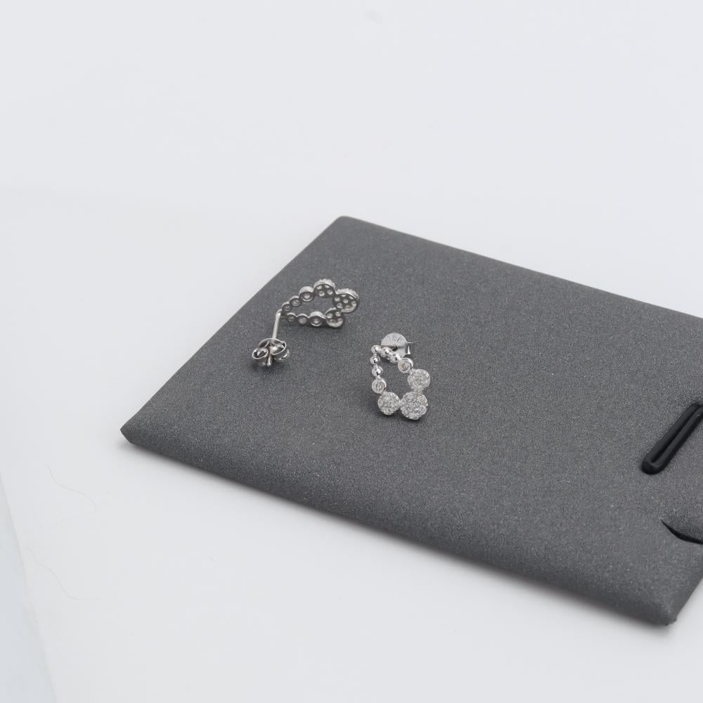 حلق ذهب أبيض عيار 18 بتصميم مميز يجمع بين الرقي والبساطة. صُمم خصيصاً ليكون لمسة مثالية لأناقتك، مما يجعله خياراً فاخراً يضيف لمسة من التألق إلى إطلالتك اليومية.