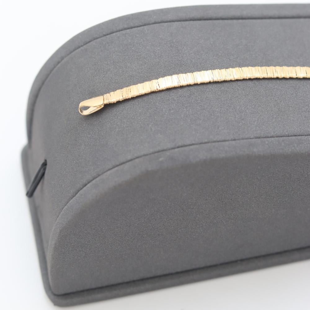 سوار ذهب بتصميم فلات أنيق، مصاغ من ذهب عيار 18 قيراط بأسطح ناعمة ولمعة عاكسة تلفت الأنظار. يبرز التصميم المسطّح بساطة فاخرة تناسب الذوق العصري