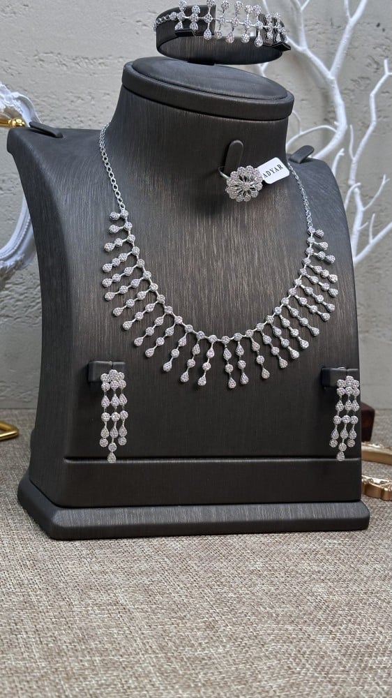 طقم ذهب ابيض تصميم الالماس عيار 18 الوزن 25.6 جرام تقريباً