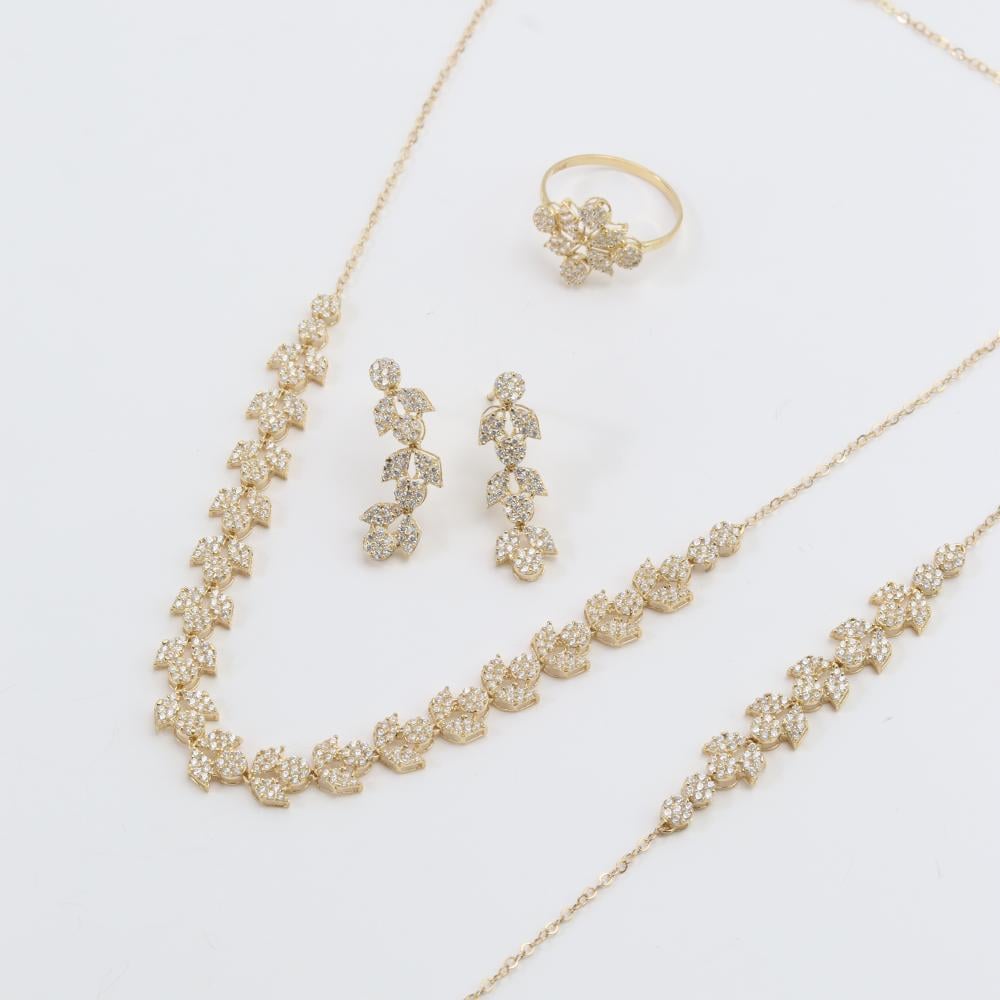 طقم ذهب عيار 18 بتصميم فريد يلامس الذوق الرفيع، يجمع بين الأناقة والفخامة في كل تفصيل لتكتمل إطلالتك وتضيف لمسة من التميز لكل يوم.
