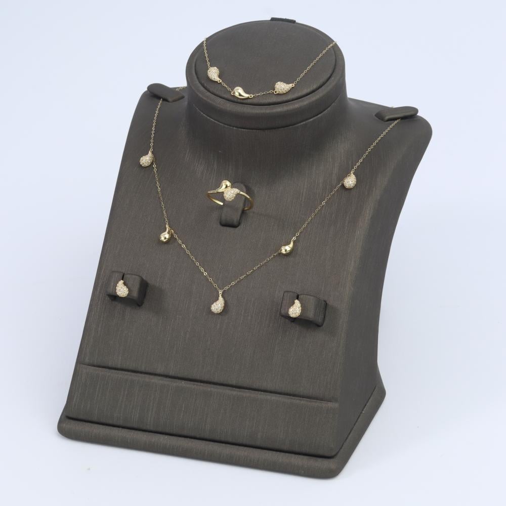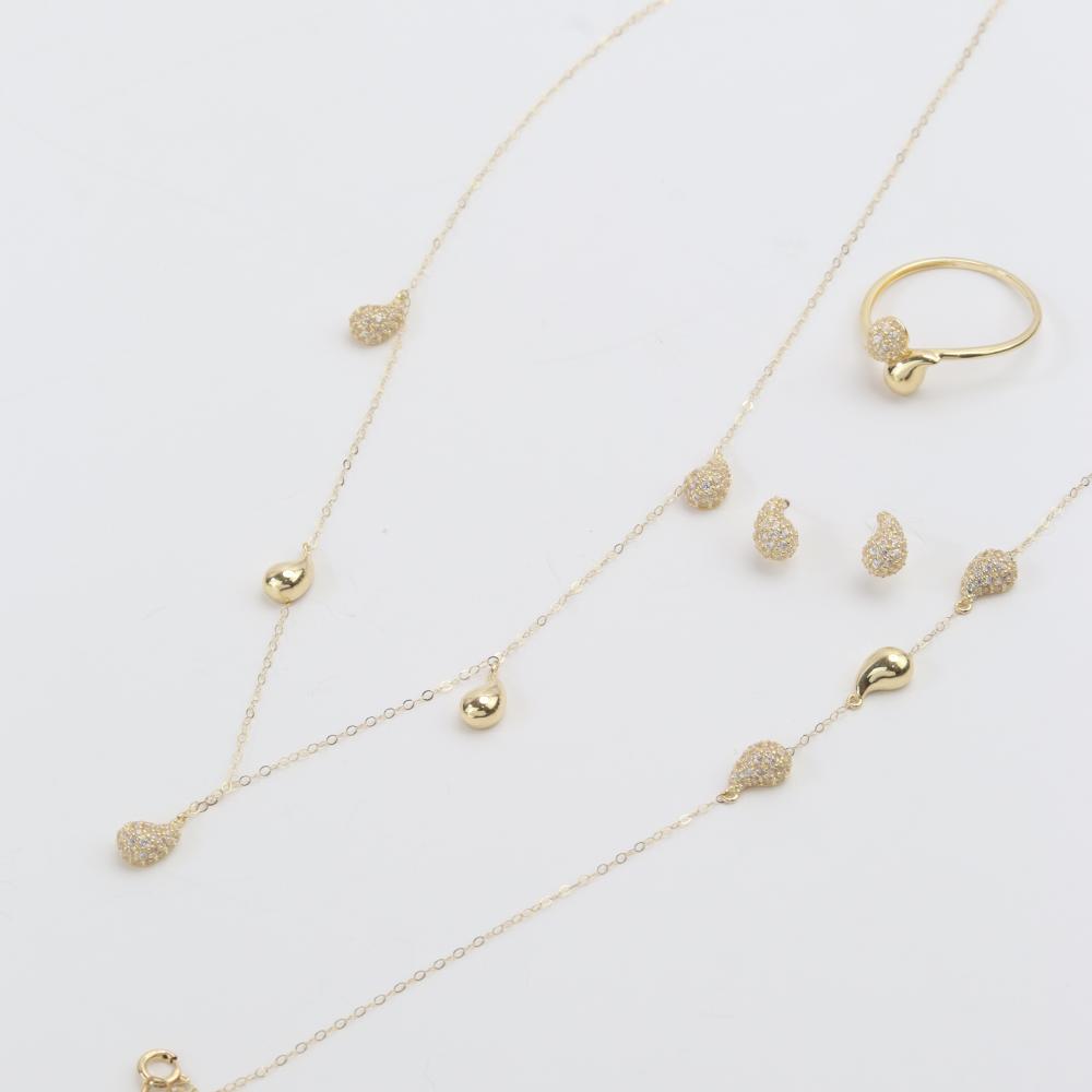 طقم ذهب عيار 18 بتصميم دقيق وأنيق يعبّر عن الفخامة والبساطة في آن واحد لإضافة لمسة من التميز والأنوثة على إطلالتك.