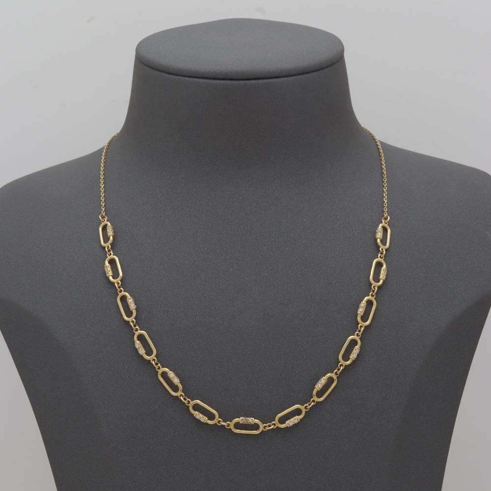 عقد ذهب فاخر بتصميم يفيض بالأناقة والأنوثة، صيغ من الذهب الخالص بانسيابية راقية تلتف حول العنق بلطف، ليمنحك حضورًا لافتًا ولمسة من الفخامة الكلاسيكية.