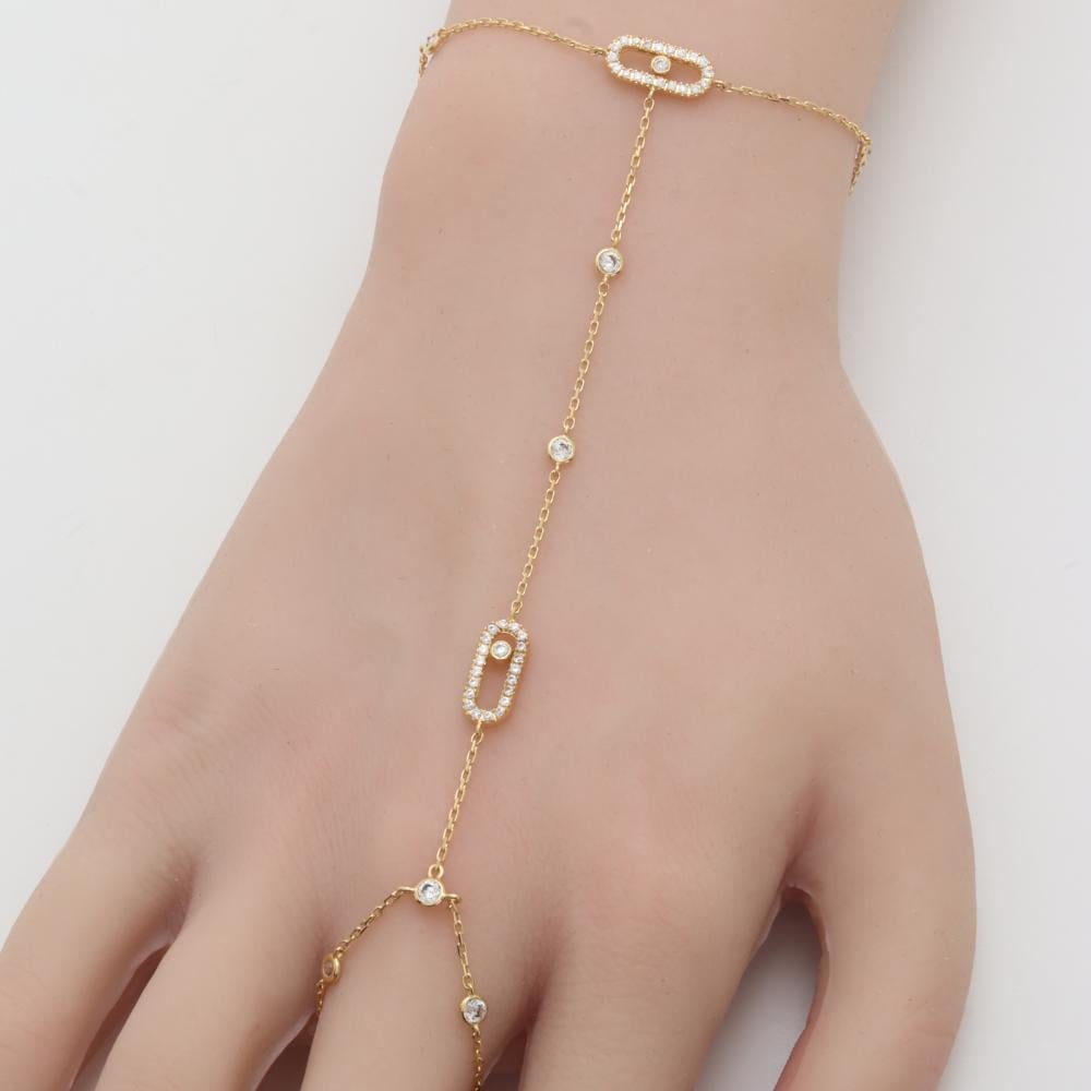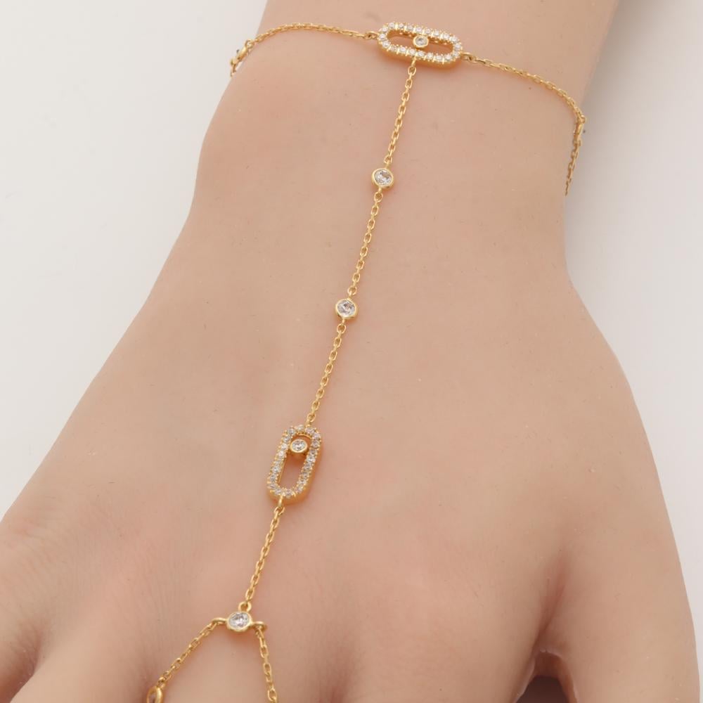يُزين اليد بانسيابية ذهبية تلامس المعصم وتلف الأصابع بكل أناقة